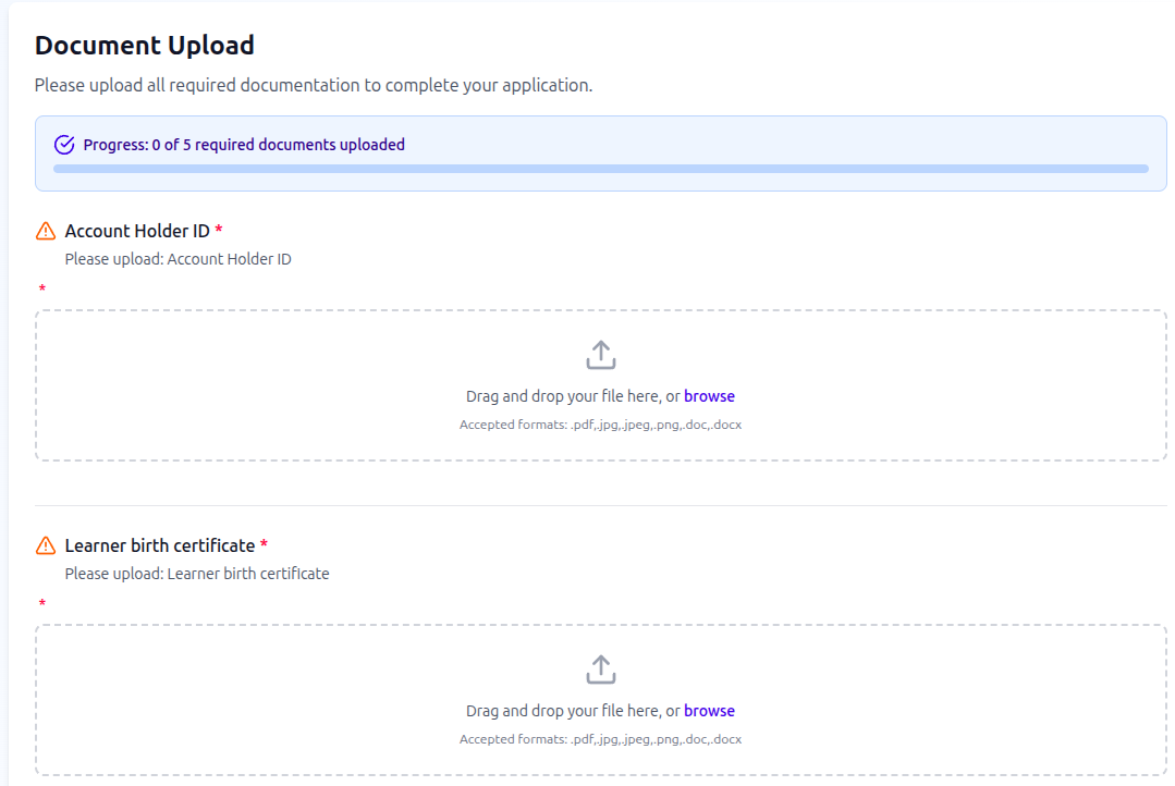 - Upload DocumentsUpload and store critical enrolment documents (birth certificates, prior report cards, transfer letters, etc.) in secure digital format. Associate documents with specific checklist items for streamlined verification and compliance.